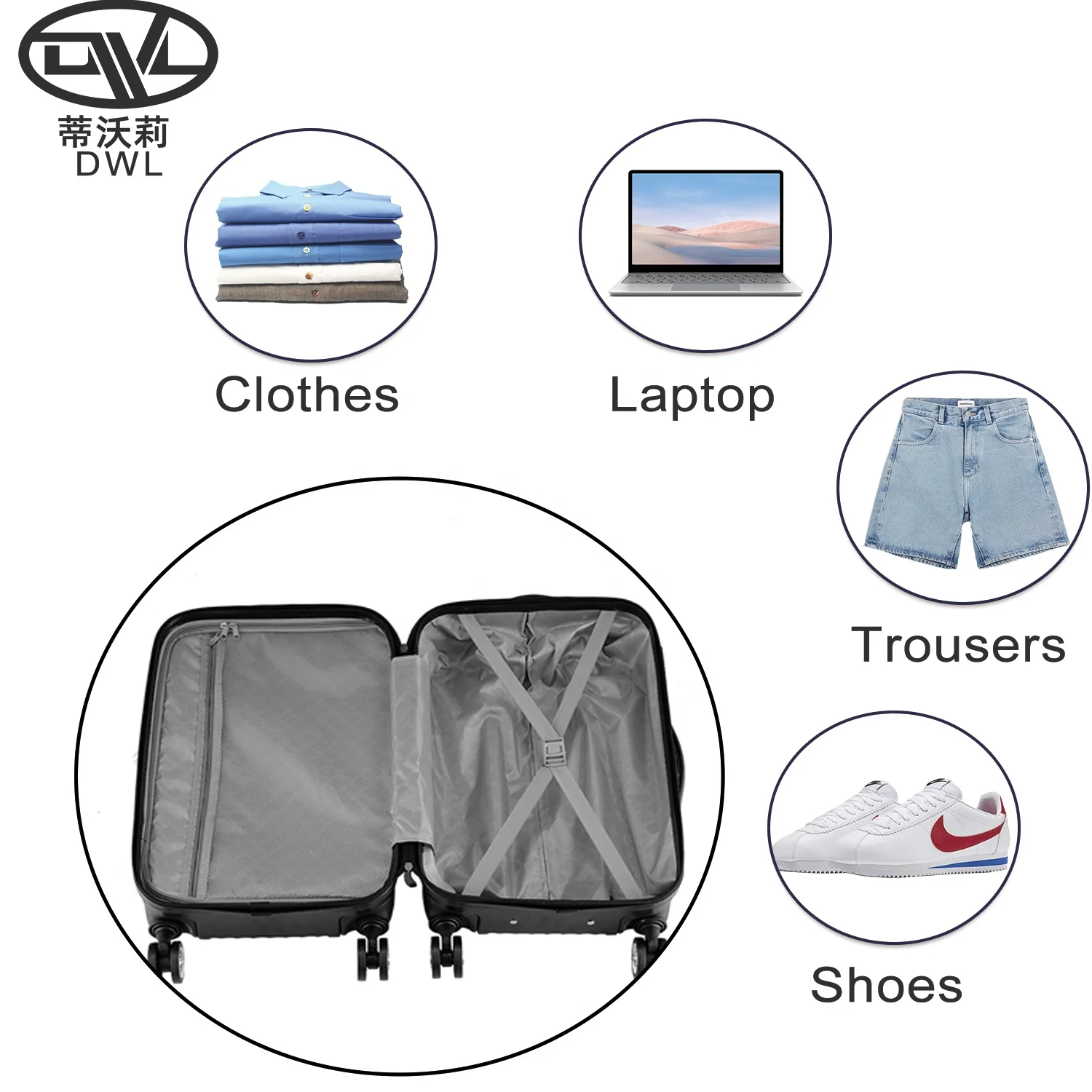 You can choose luggage accessories of different quality according to their individual needs and preferences, including tie rods, wheels, linings, etc., to ensure that the durability and comfort of the suitcase match their travel needs. Dongguan DWL TRAVEL PRODUCT CO,.LTD can meet your need !