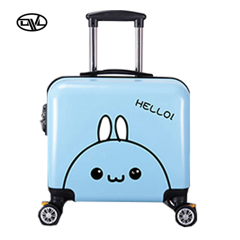 Cute 18-Inch Cabin Kid Travel Luggage ABS Printed Airplane Spinner Suitcase Lightweight PC Material Suitcase for Children