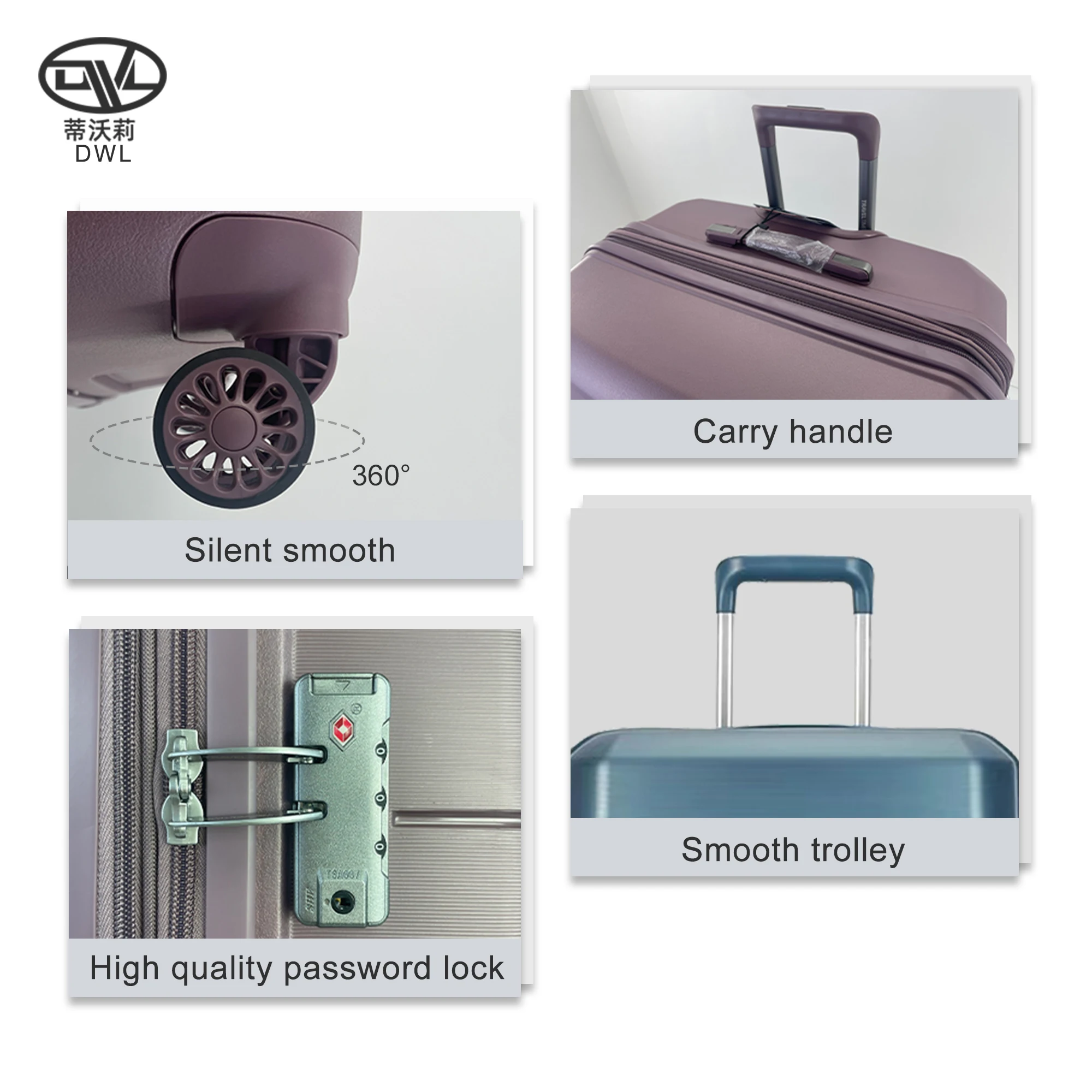 You can choose luggage accessories of different quality according to their individual needs and preferences, including tie rods, wheels, linings, etc., to ensure that the durability and comfort of the suitcase match their travel needs. Dongguan DWL TRAVEL PRODUCT CO,.LTD can meet your need !