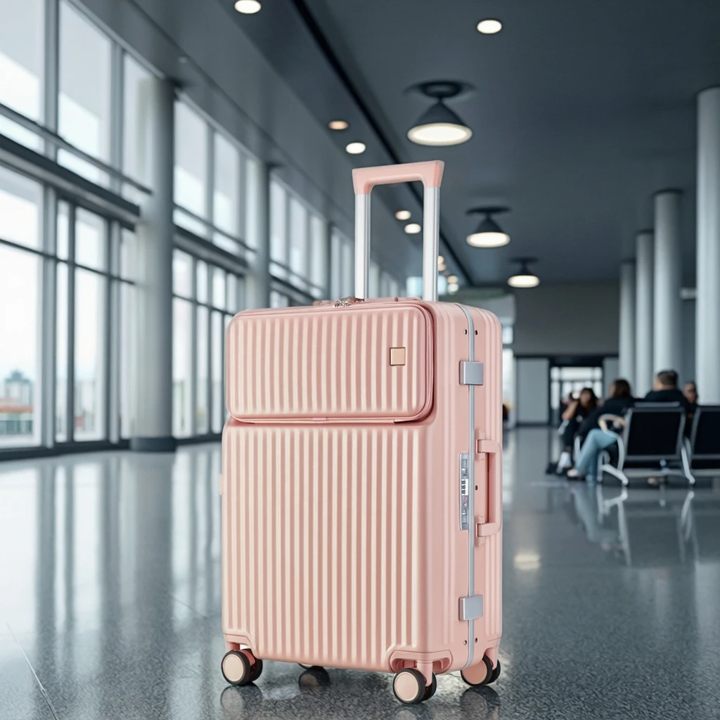 New Style Luxury Luggage Set Trolley Aluminum Frame with PC Material Front Open Pocket High Quality Good Sale Luggage Set
